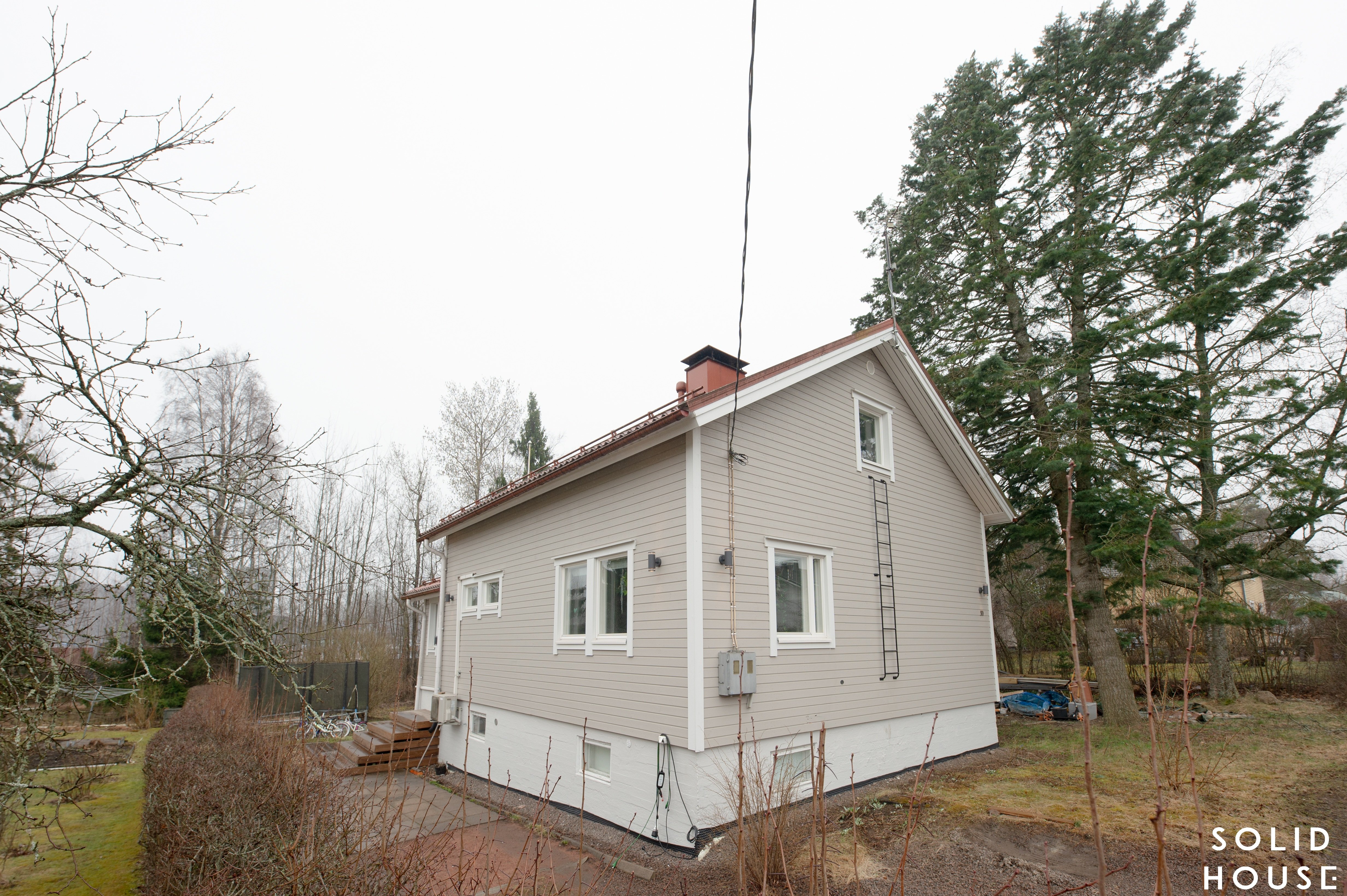 Myyjät ovat kunnostaneet pintoja, vaihtaneet julkisivun mineriittilevyt puuvuoraukseen ja viimeisimmäksi tehneet terassin pihaan.