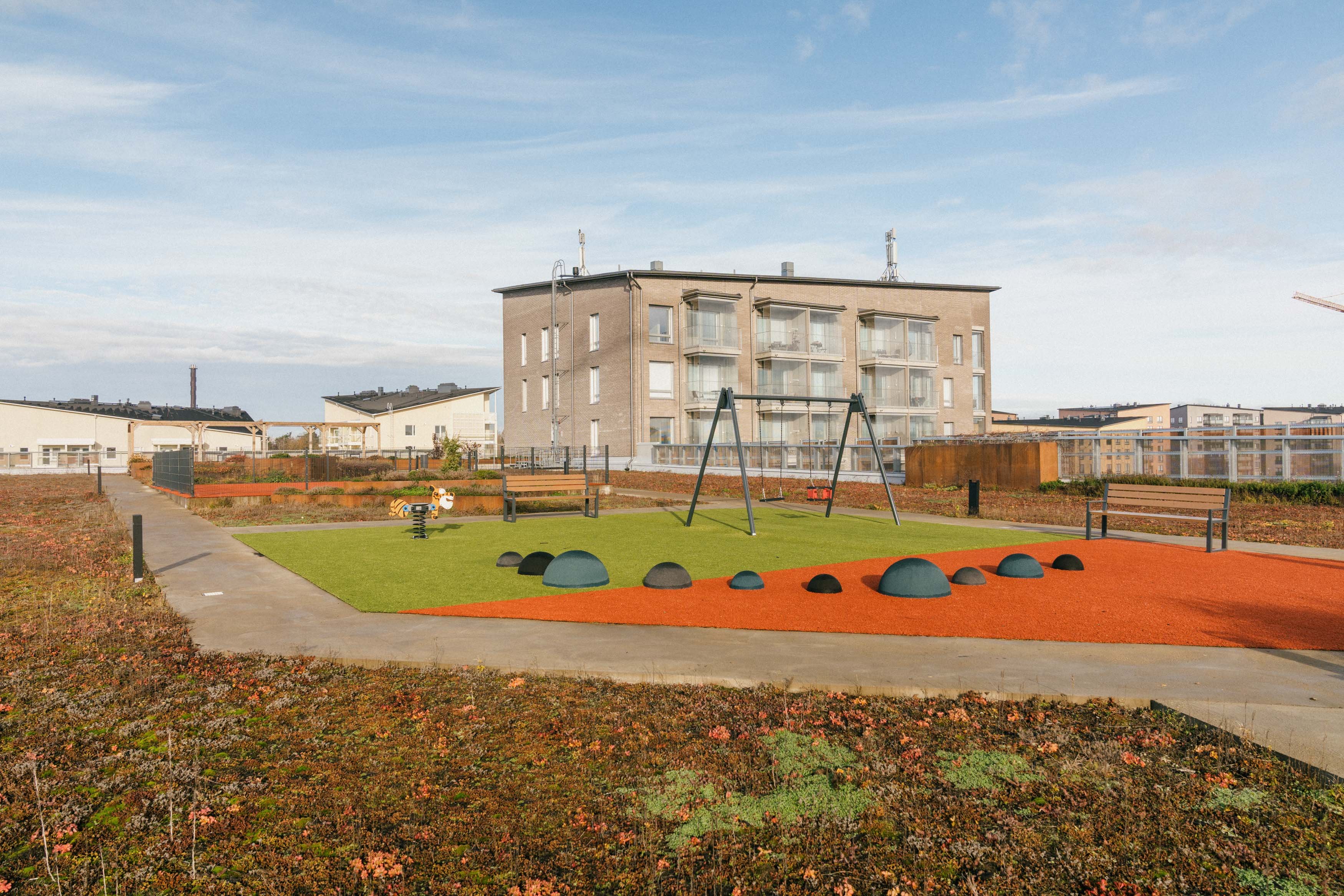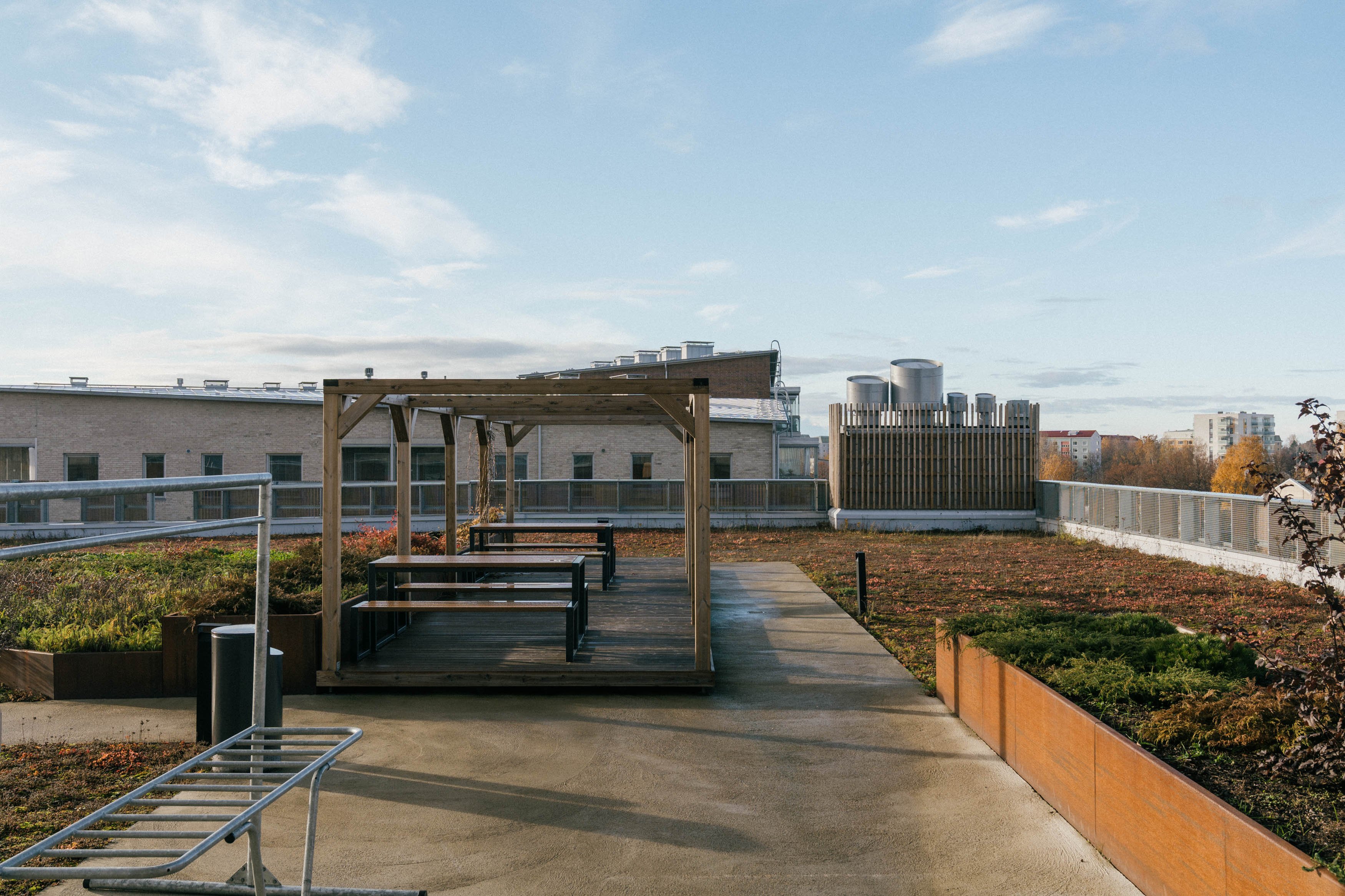 Yhtiön yksi ehdottomista WOW-tekijöistä on naapuriyhtiön kanssa yhteiskäytössä oleva piha-alue, joka sijaitsee viereisen pysäköintitalon katolla. Käynti oleskelupihalle tapahtuukin talon kuudennesta kerroksesta. Huikeat puitteet oleskelupihalle ja näkymät kattojen yli merelle asti!